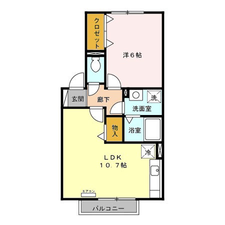 | 間取り詳細 | 洋室 6畳 、 LDK 10.7畳 |
