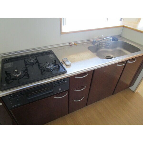 | 設備 | ガス(プロパン)、インターホン(TVモニター付き)、オートロック、駐輪場、角部屋、フローリング、全居室フローリング、ベランダ・バルコニー、2面バルコニー、クローゼット、全居室収納、下駄箱、バス・トイレ別(別室)、シャワー、追い焚き、浴室乾燥機、脱衣所、洗面所独立、シャンプードレッサー、洗濯機置き場(室内)、コンロ口数(3)、コンロ種類(プロパン)、システムキッチン、カウンターキッチン、対面キッチン、エアコン、エアコン台数(1)、CATV | ||