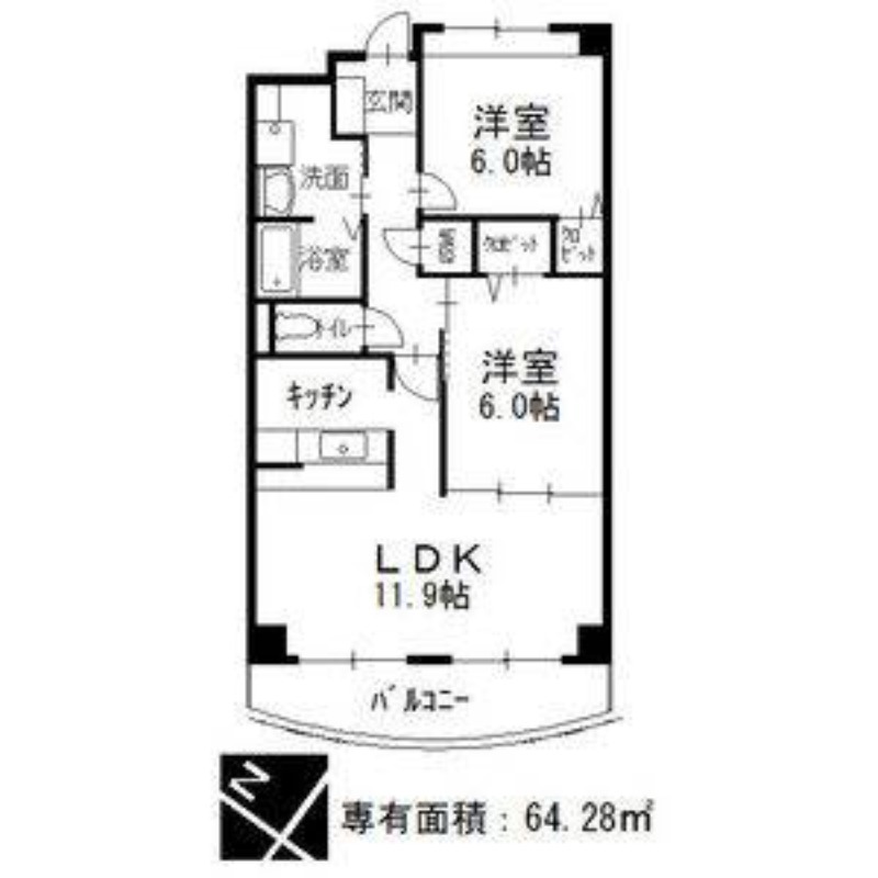 | 間取り | 2LDK | 面積 | 64.28㎡ |