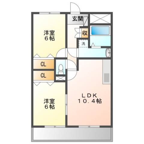 | 間取り詳細 | 洋室 6畳 、 洋室 6畳 、 LDK 10.4畳 |