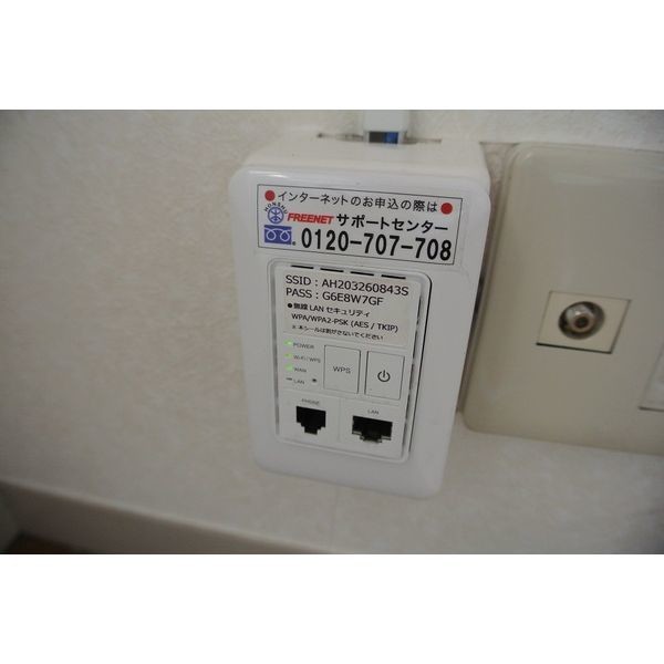 | 設備 | ガス(プロパン)、インターホン(TVモニター付き)、専用ゴミ置き場(あり)、駐輪場、日当り良好、フローリング、全居室フローリング、照明器具、ベランダ・バルコニー、収納スペース、クローゼット、全居室収納、押入れ、下駄箱、バス・トイレ別(別室)、シャワー、給湯、洗面台、洗濯機置き場(室内)、コンロ口数(1)、コンロ種類(都市ガス)、エアコン、CATV、インターネット使用料無料 | ||