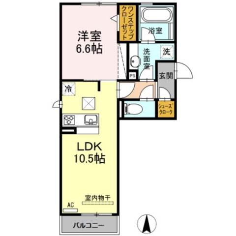 | 間取り詳細 | 洋室 6.6畳 、 LDK 10.5畳 |