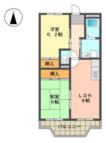 | 間取り詳細 | 和室 6畳 、 洋室 6.2畳 |