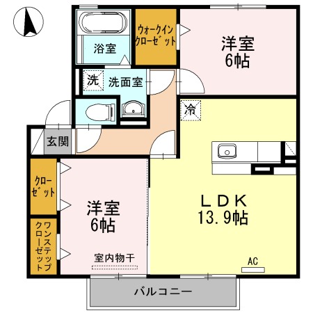 | 間取り詳細 | 洋室 6畳 、 洋室 6畳 、 LDK 13.9畳 |