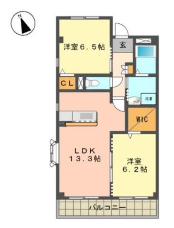 | 間取り詳細 | 洋室 6.2畳 、 洋室 6.5畳 、 LDK 13.3畳 |