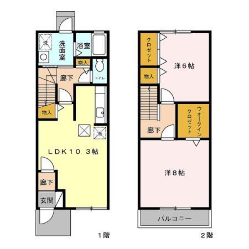 | 間取り詳細 | 洋室 8畳 、 洋室 6畳 、 LDK 10.3畳 |