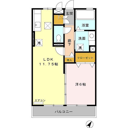 | 間取り詳細 | 洋室 6畳 、 LDK 11.5畳 |