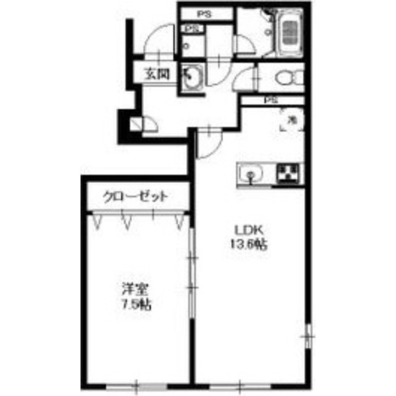 | 間取り詳細 | LDK 13.6畳 、 洋室 7.5畳 |