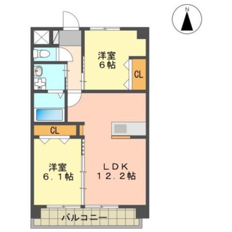 | 間取り詳細 | 洋室 6.1畳 、 洋室 6.1畳 、 LDK 12.2畳 |