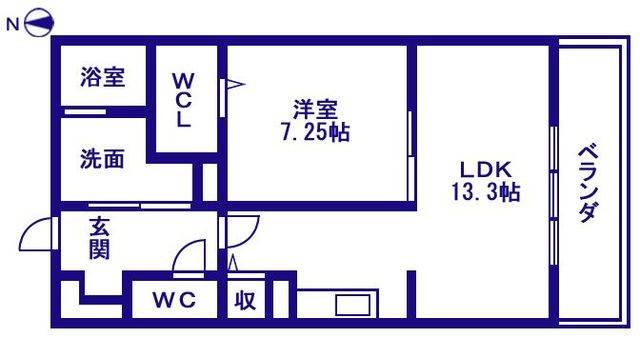 | 間取り詳細 | LDK 13.3畳 、 洋室 7.25畳 |