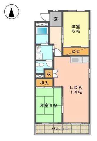 | 間取り詳細 | 和室 6畳 、 洋室 6畳 、 LDK 14畳 |