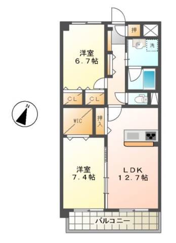 | 間取り詳細 | 洋室 6.7畳 、 洋室 7.4畳 、 LDK 12.7畳 |