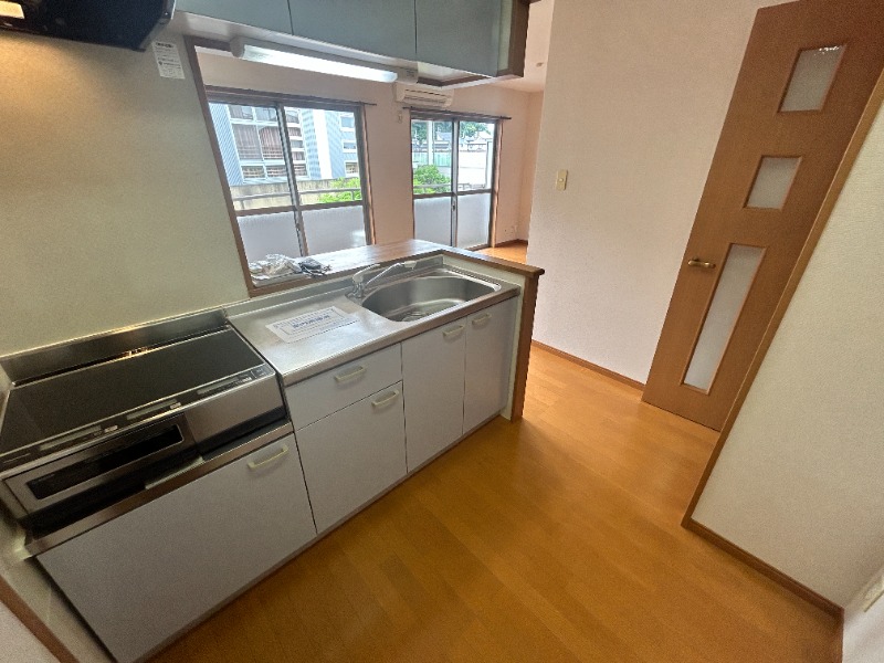 オール電化、2LDK!IHクッキングヒーター設置あり。オートロック、モニターホン付きで安心。