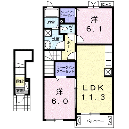 洋室 6.1畳 LDK 11.3畳 |