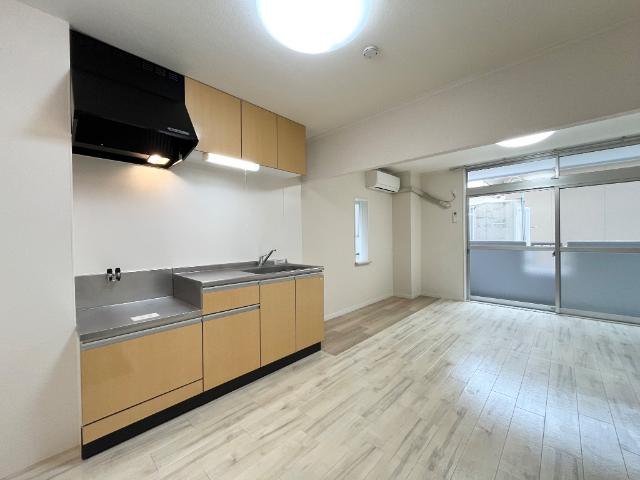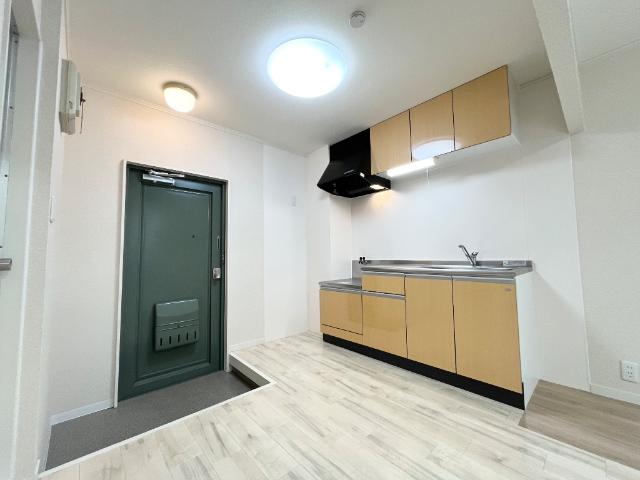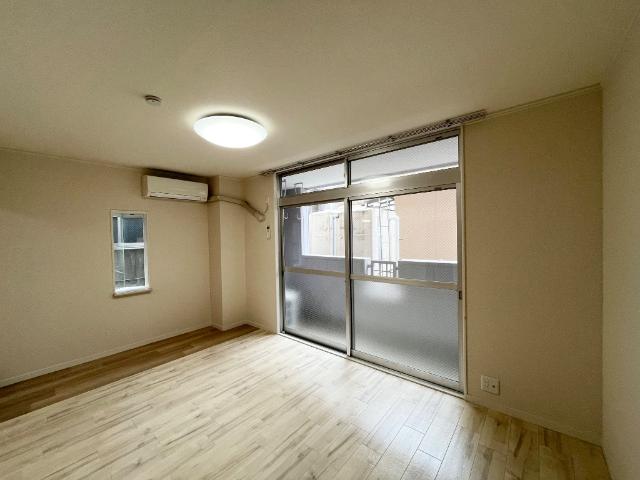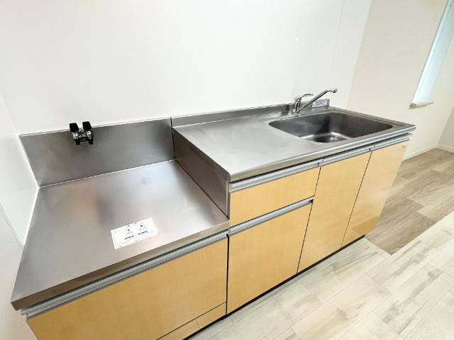 2口ガスコンロ設置可、エアコン付きで一人暮らしにおすすめ。1階一番奥の角部屋です。