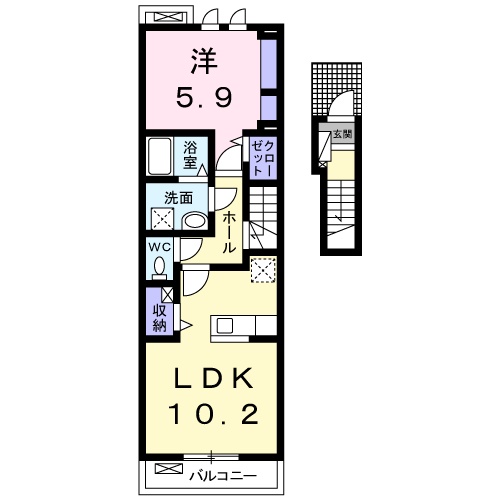 | 間取り詳細 | 洋室 5.9畳 、 LDK 10.2畳 |