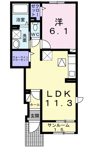 | 間取り詳細 | 洋室 6.1畳 、 LDK 11.3畳 |