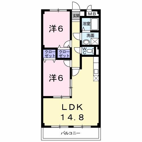 | 間取り詳細 | 洋室 6畳 、 洋室 6畳 、 LDK 14.8畳 |