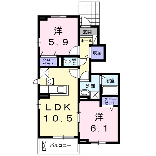 | 間取り詳細 | 洋室 6.1畳 、 洋室 5.9畳 、 LDK 10.5畳 |
