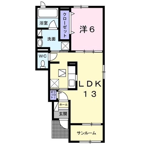 | 間取り詳細 | 洋室 6畳 、 LDK 13畳 |