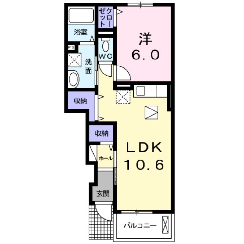 | 間取り詳細 | 洋室 6畳 、 LDK 10.6畳 |