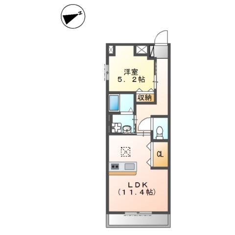 | 間取り詳細 | LDK 11.2畳 、 洋室 5.2畳 |