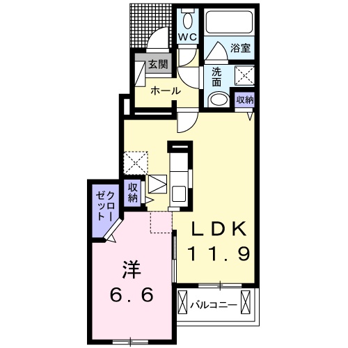 | 間取り詳細 | 洋室 6.6畳 、 LDK 11.9畳 |