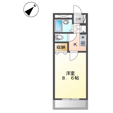 | 間取り詳細 | K 2畳 、 洋室 8.6畳 |