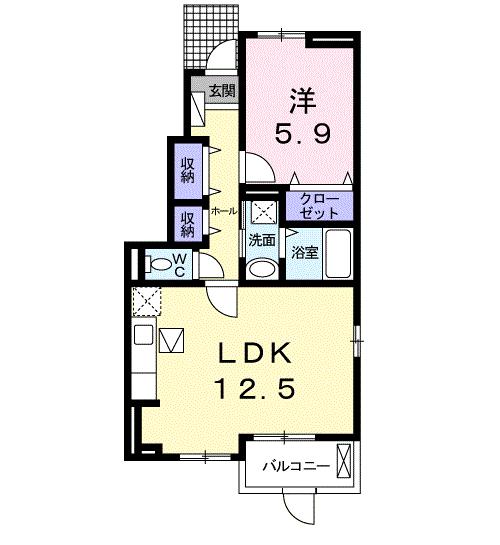 | 間取り詳細 | 洋室 5.9畳 、 LDK 12.5畳 |