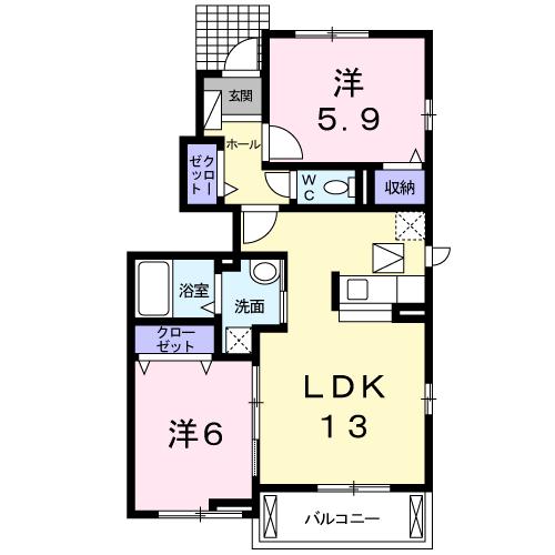 | 間取り詳細 | 洋室 6畳 、 洋室 5.9畳 、 LDK 13畳 |