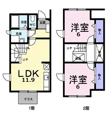 | 間取り詳細 | 洋室 6畳 、 洋室 6畳 、 LDK 11.9畳 |