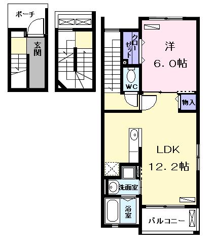 | 間取り詳細 | 洋室 6畳 、 LDK 12.2畳 |