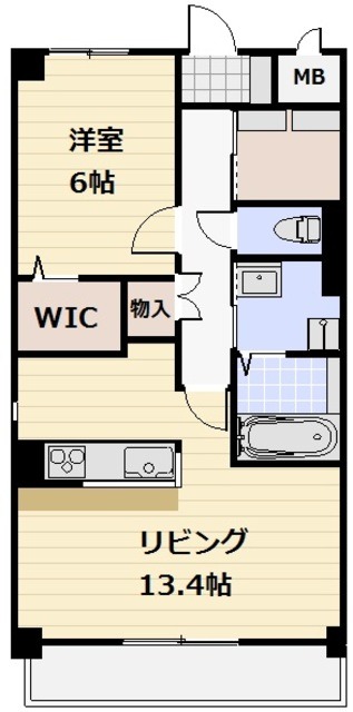 | 間取り詳細 | 洋室 6畳 、 LDK 13.4畳 |