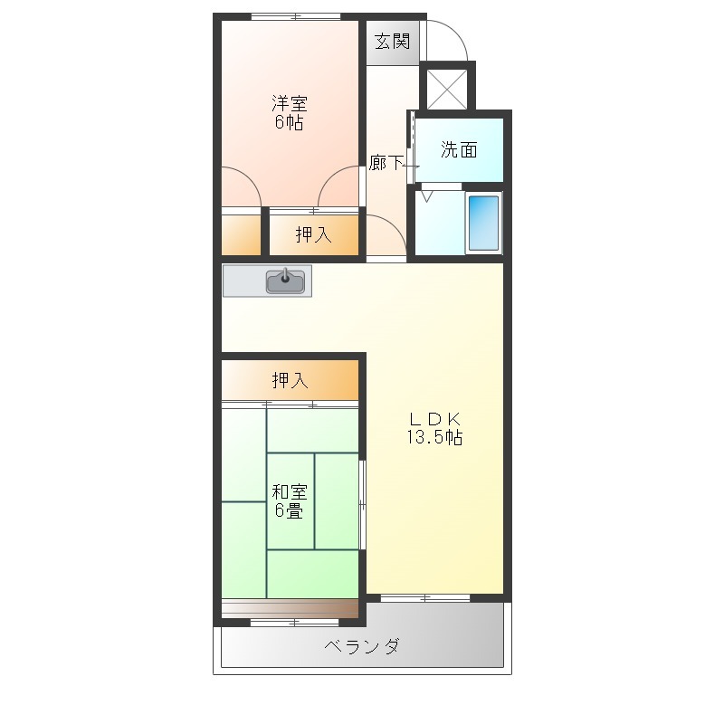 | 間取り詳細 | 洋室 6畳 、 和室 6畳 、 LDK 13.5畳 |