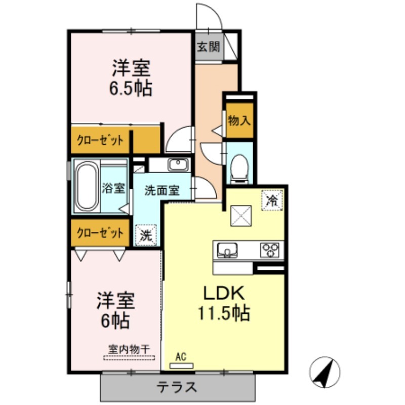 | 間取り詳細 | LDK 11.5畳 、 洋室 6.5畳 、 洋室 6畳 |