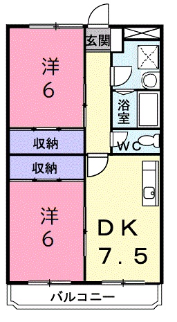 | 間取り詳細 | 洋室 6畳 、 洋室 6畳 、 DK 7.5畳 |