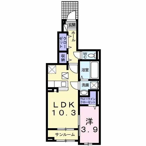 | 間取り詳細 | 洋室 3.9畳 、 LDK 10.3畳 |