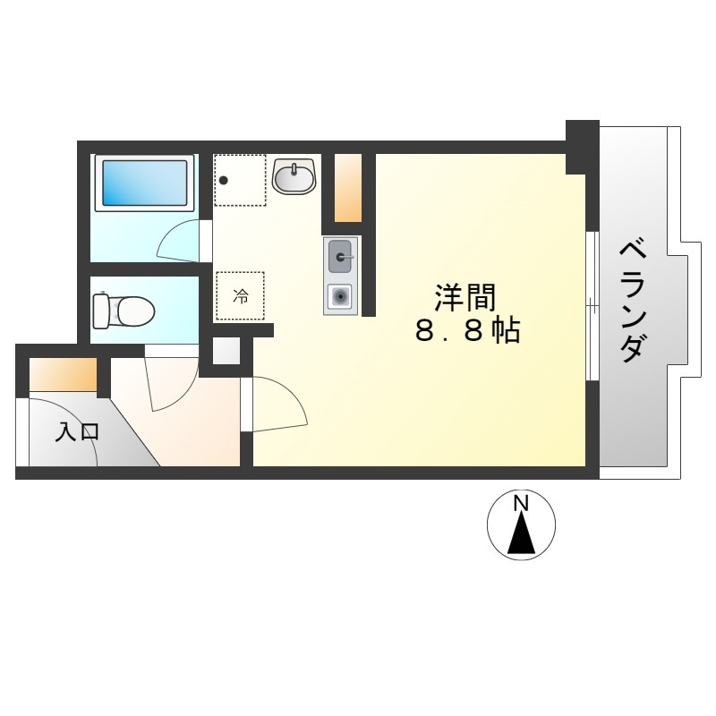 | ワンルーム | 洋室 8.8畳 | 24.53㎡ |