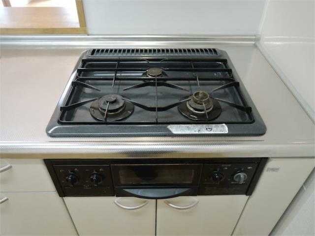 | 設備 | ガス(プロパン)、インターホン(TVモニター付き)、駐輪場、日当り良好、角部屋、フローリング、全居室フローリング、照明器具、ベランダ・バルコニー、収納スペース、クローゼット、クローゼット数(1)、ウォークインクローゼット、ウォークインクローゼット数(1)、全居室収納、下駄箱、バス・トイレ別(別室)、シャワー、追い焚き、浴室乾燥機、オートバス、脱衣所、給湯、温水洗浄便座、洗面所独立、シャンプードレッサー、洗面所にドア、洗濯機置き場(室内)、コンロ設置済、コンロ口数(3)、コンロ種類(プロパン)、グリル、システムキッチン、カウンターキッチン、対面キッチン、エアコン、エアコン台数(2)、地デジ(UHF)、光ファイバー | ||