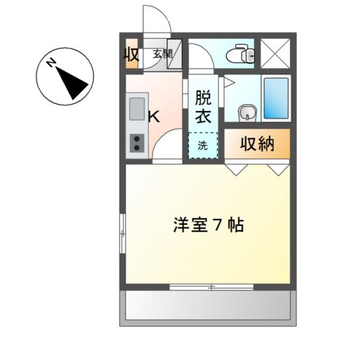 | 間取り詳細 | K 2.5畳 、 洋室 7畳 |