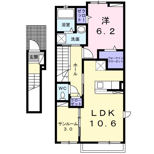 | 間取り詳細 | 洋室 6.1畳 、 LDK 10.4畳 |