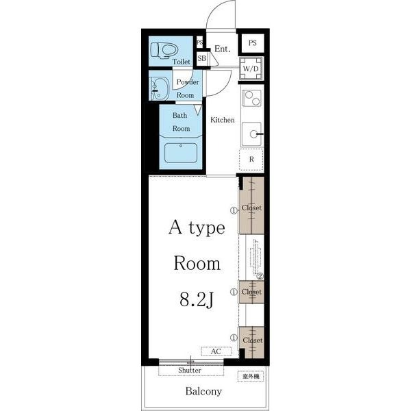 | 1K | 洋室 8.2畳 | 27.53㎡ |