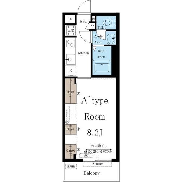 | 1K | 洋室 8.2畳 | 27.53㎡ |
