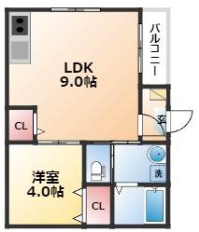 | 間取り詳細 | 洋室 4畳 、 LDK 9畳 |
