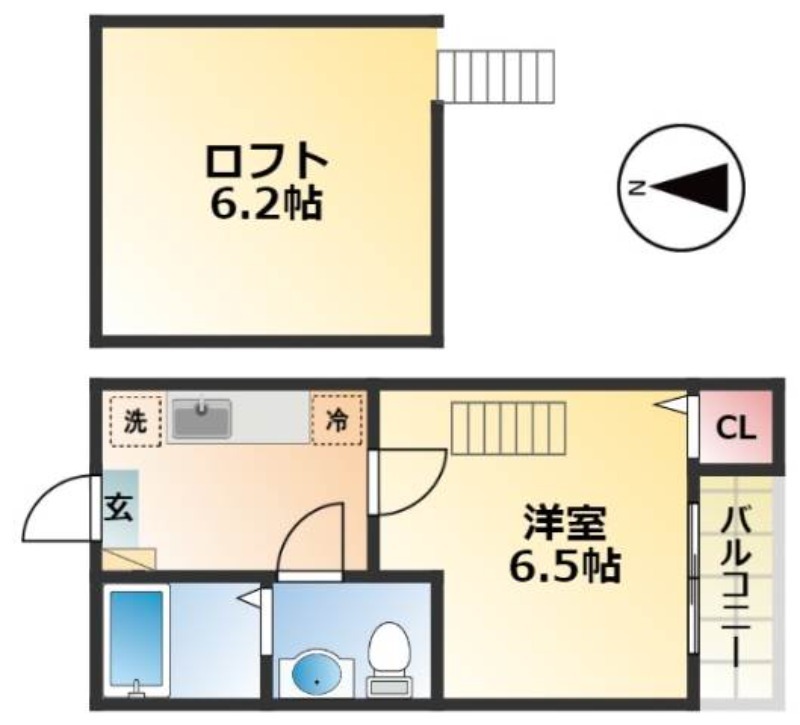 | 設備 | ガス(プロパン)、管理形態(巡回)、インターホン(TVモニター付き)、専用ゴミ置き場(あり)、駐輪場、フローリング、全居室フローリング、ロフト、ベランダ・バルコニー、クローゼット、クローゼット数(1)、下駄箱、バス・トイレ別(別室)、シャワー、脱衣所、給湯、温水洗浄便座、洗面所独立、洗面所にドア、洗濯機置き場(室内)、コンロ設置済、コンロ口数(2)、コンロ種類(IH)、エアコン、エアコン台数(1)、24H換気システム、BS、光ファイバー、インターネット使用料無料 | ||