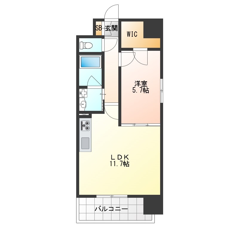 | 間取り詳細 | 洋室 5.7畳 、 LDK 11.7畳 |