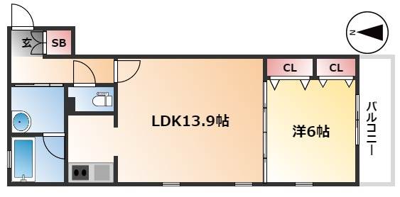 | 間取り詳細 | 洋室 6畳 、 LDK 13.9畳 |
