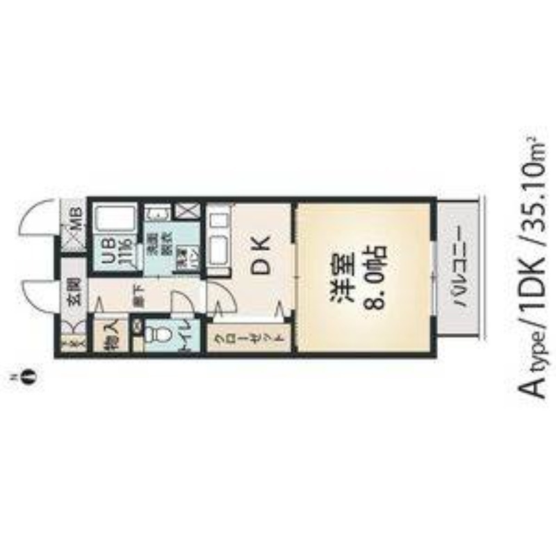 | 1DK | 洋室 8畳 | 35.1㎡ |