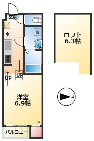 | 1K | 洋室 6.9畳 | 21.72㎡ |