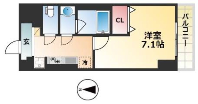 | 1K | 洋室 7.5畳 | 26.48㎡ |